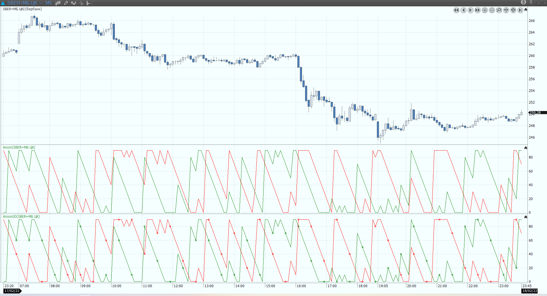 Aroon Up отображается в зеленом цвете.