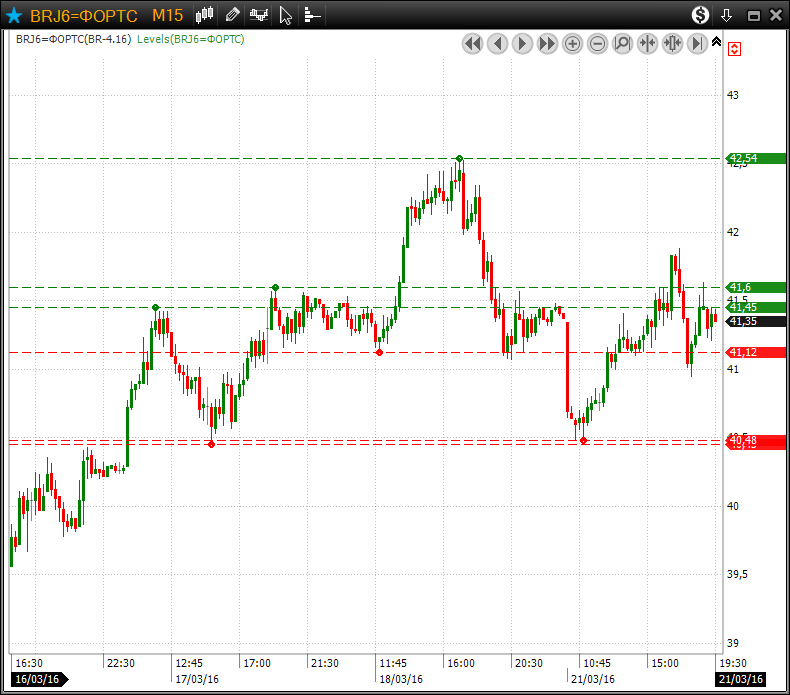 Пример с 2 индикаторами SixLevels. Разные параметры и толщина линии уровня.