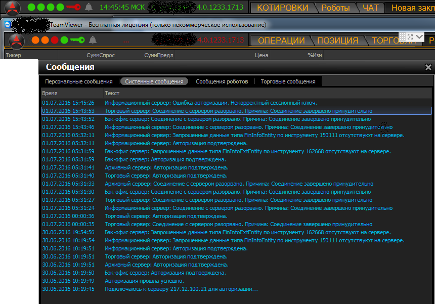 Снятие заявки отклонено, при подключенном сервере! С причиной "Нет подключенных трейд серверов"