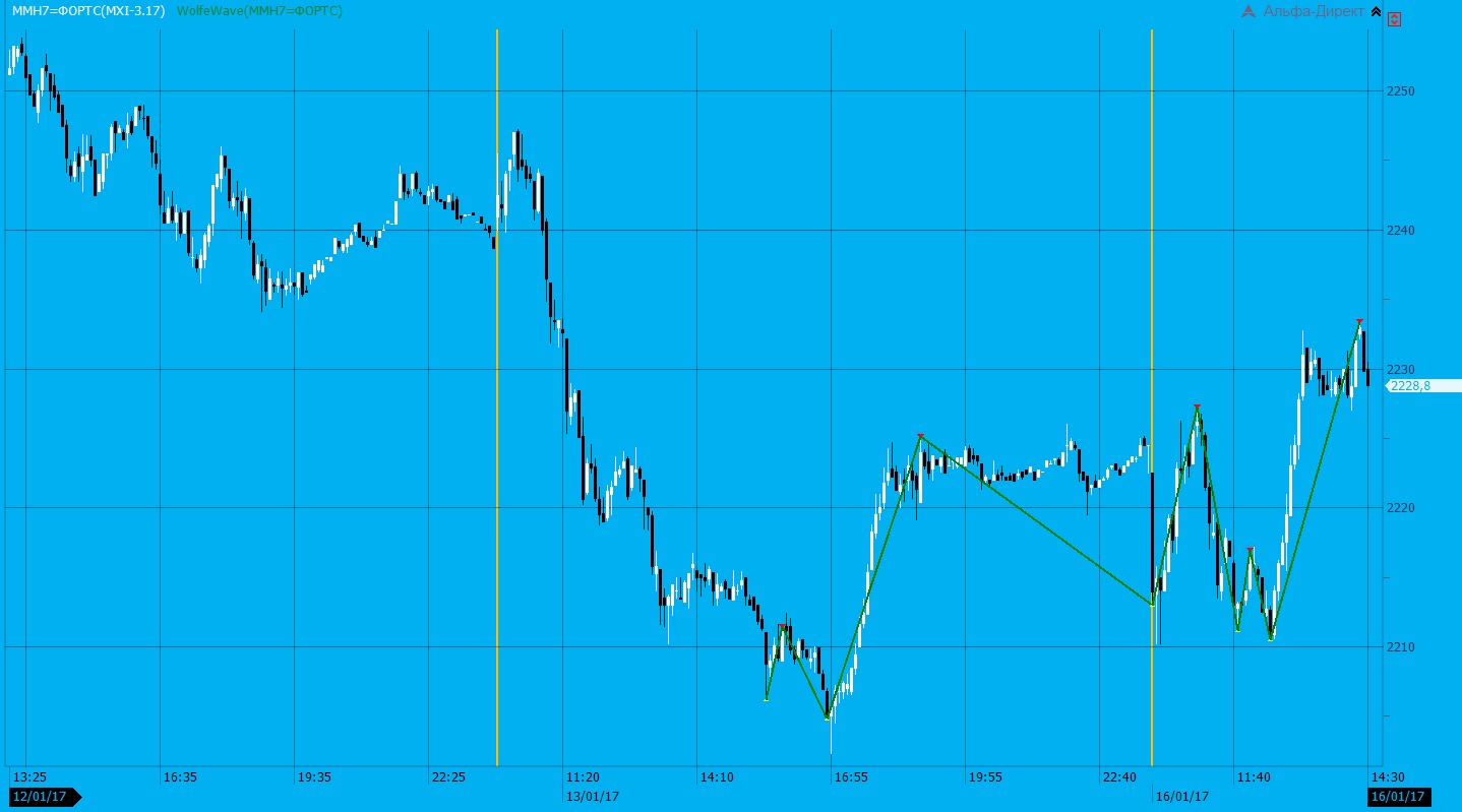 Эта попытка написать индикатор "Волны Вульфа" описание его полно в интернете если кому интересно.