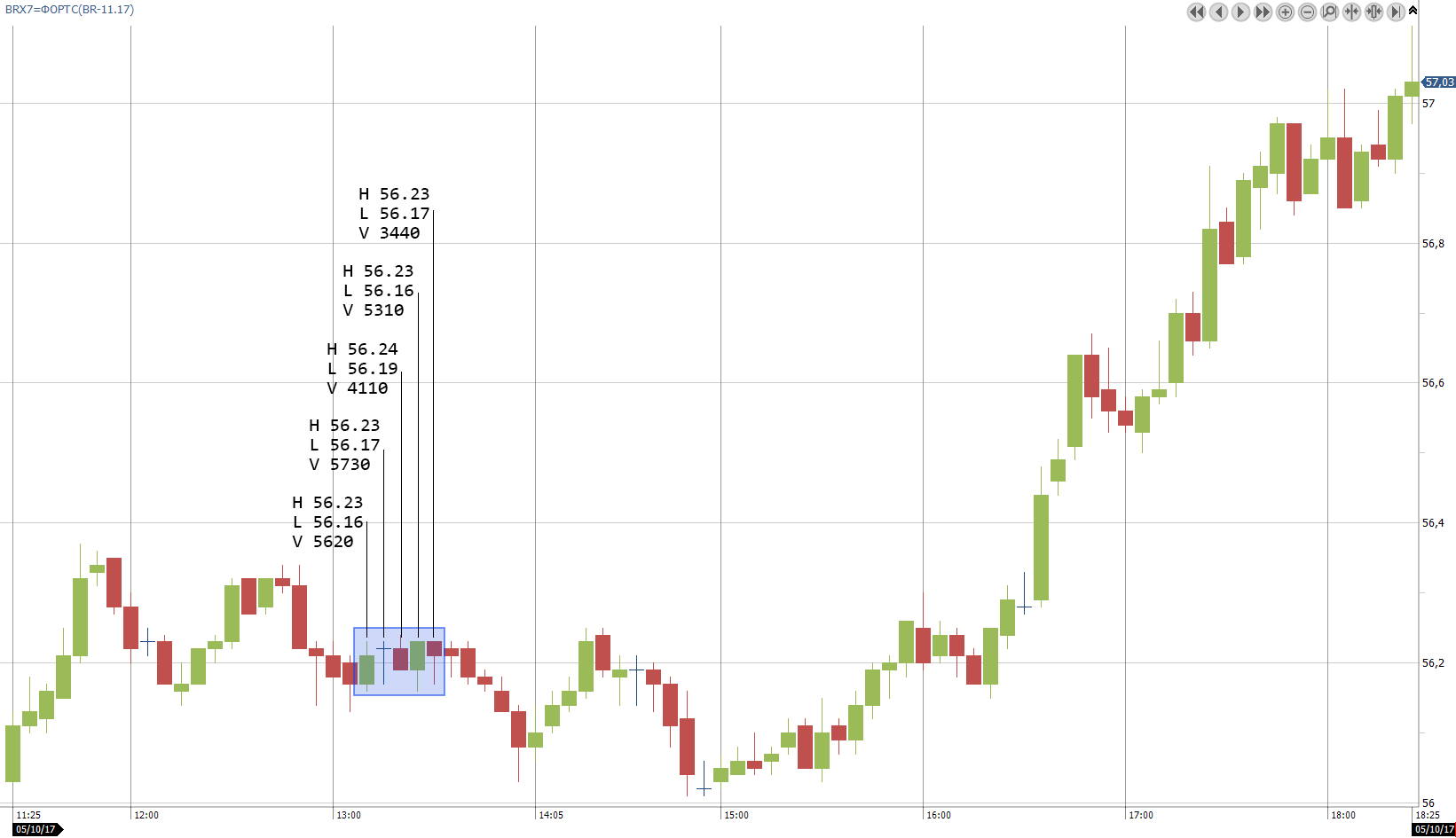 2. С каждого бара нас интересует средняя цена на основе high и low, а также объем того же бара (рис 2)