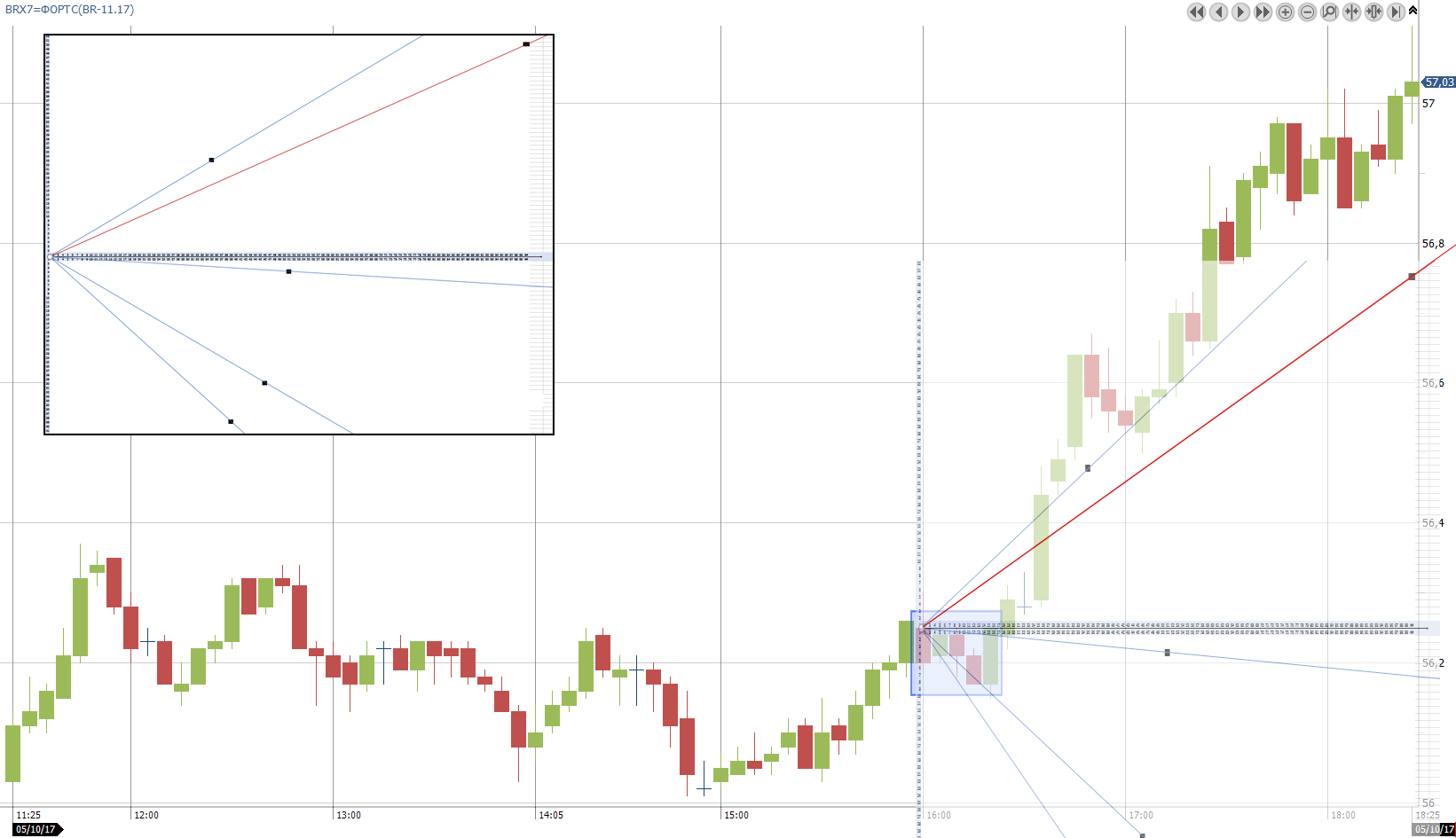 6. Для наглядности рисуем лучи, где первая точка - открытие первого бара, на которых идет расчет (рис 6)