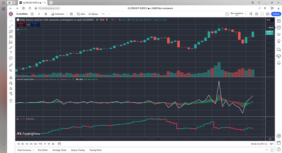 Объем отражает степень финансовой и эмоциональной вовлеченности игроков данного рынка. Когда объем растет, НРI увеличивается.