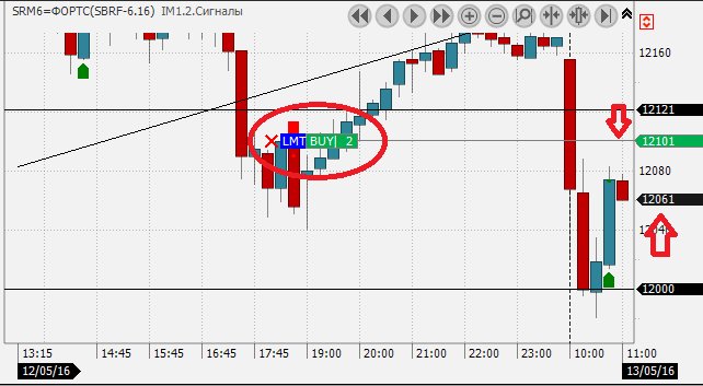 Лимитная заявка на покупку выше текущей цены. Заявка не выполнена.