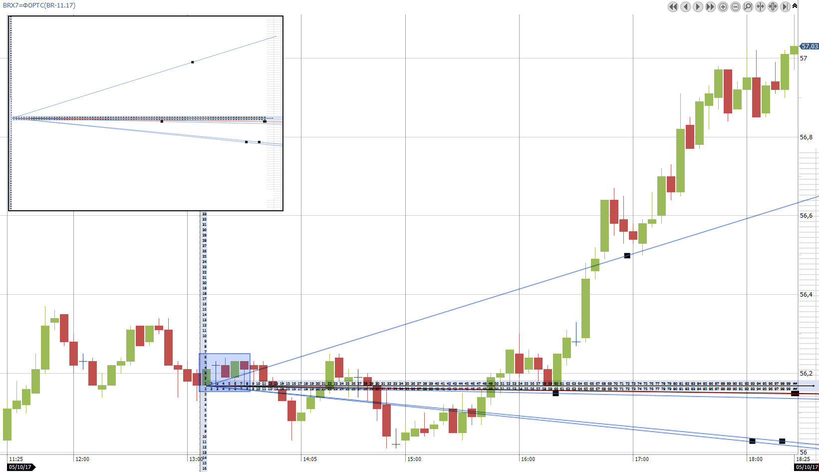 6. Для наглядности рисуем лучи, где первая точка - открытие первого бара, на которых идет расчет (рис 6)