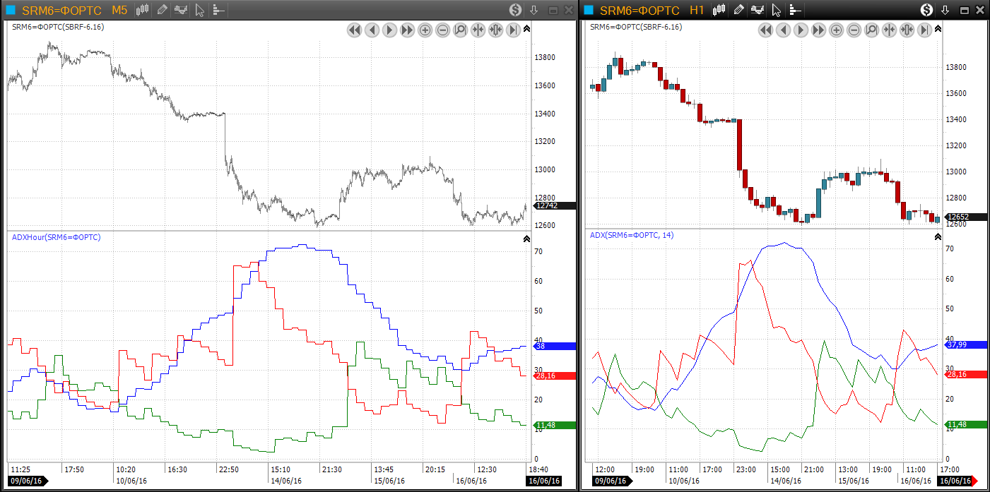Пользовательские индикаторы > ADXHour - ADX H1 на нижестоящих таймфреймах