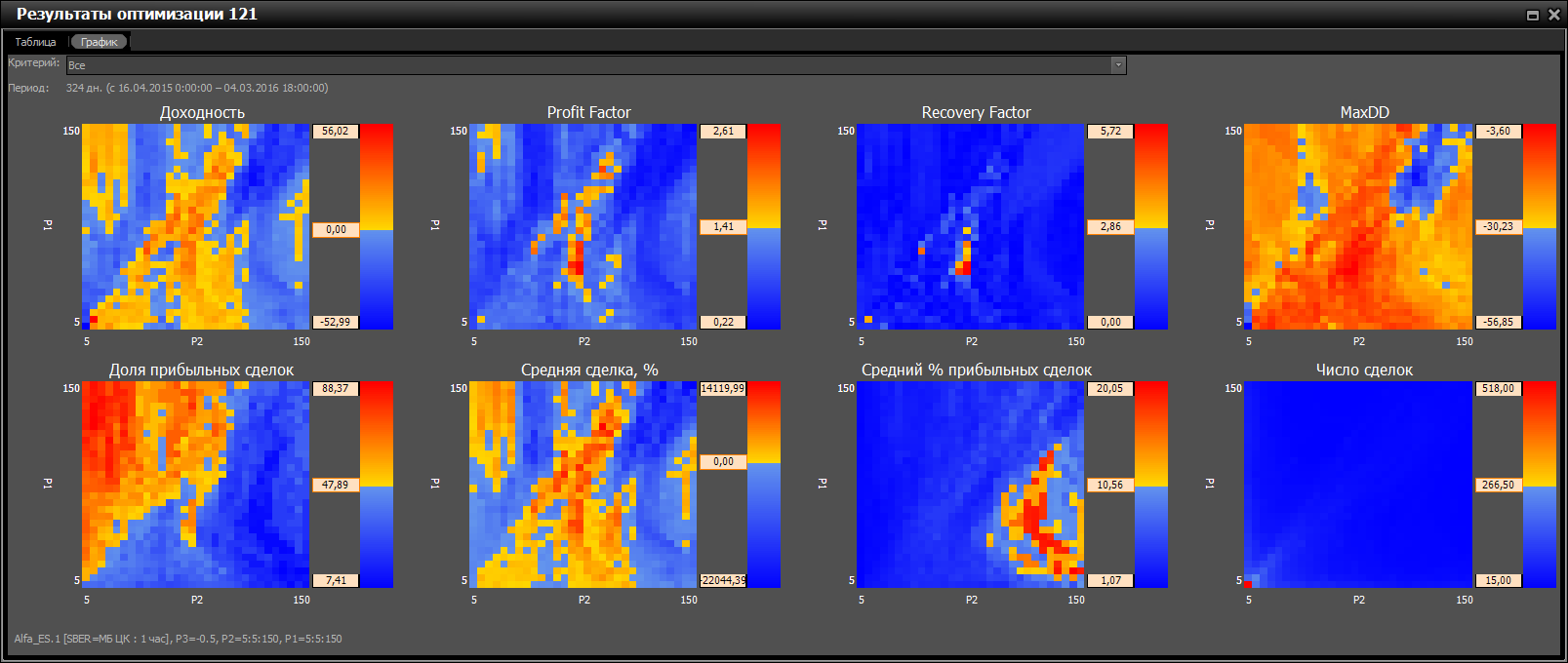P1, P2 от 5 до 150 с шагом 5