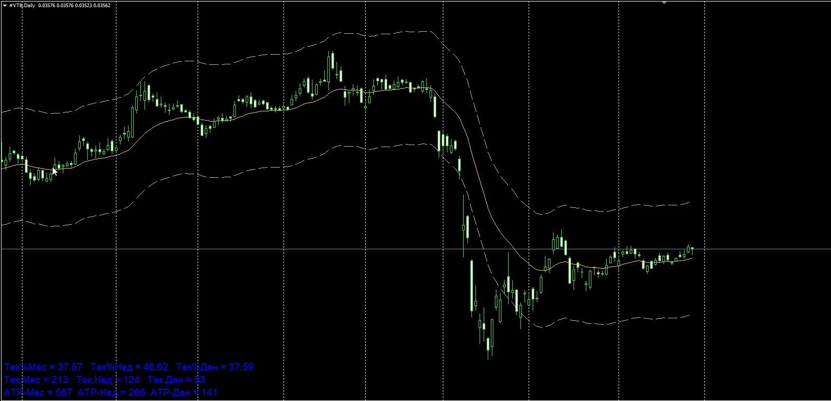 это отдельная средняя к индикатору по расчету среднего хода не имеет отношения ни какого просто на графике была так и сделал скрин,он только выводит значения в левом нижнем углу больше ни чего не требуется от него