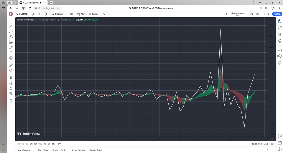 Объем отражает степень финансовой и эмоциональной вовлеченности игроков данного рынка. Когда объем растет, НРI увеличивается.