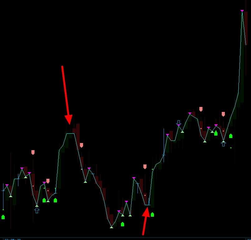 при использовании >= и <= происходит ситуация указанная стрелкой. Там одна впадина фактически , т.к. плоский участок означает отсутствие изменения цены. А индикатор расставляет там как видите ТРИ впадины и ОДНУ вершину, а их там нет.