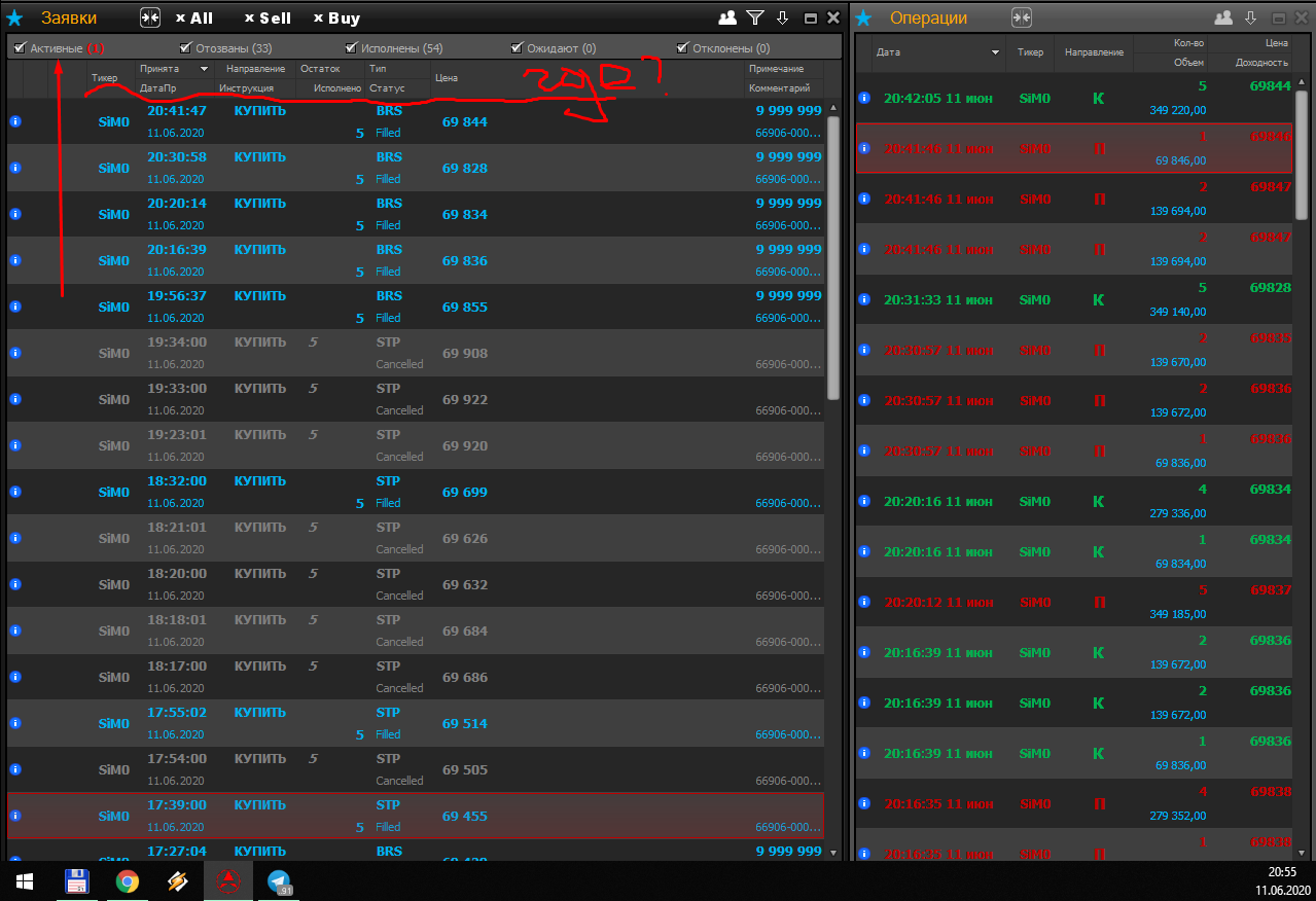 Нет STP заявок в окне заявок